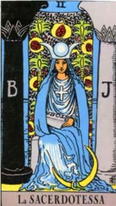 E’ colei che con assoluta serenità detiene il sapere e lo diffonde con amore a coloro che la rispettano e la seguono. E’ moglie, compagna di vita, madre. In amore è però una carta un po’ fredda, di riflessione, di difficoltà a comunicare i propri sentimenti. E’ più favorevole sul lavoro: coloro che si impegnano risolvono i propri problemi.